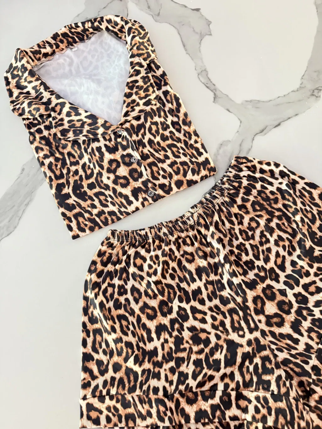 El conjunto está confeccionado en premium Tela modal con algodón, una combinación que asegura suavidad al tacto, transpirabilidad y durabilidad. Los estampados son realmente divinos, pensados para quienes buscan un diseño atractivo sin sacrificar la comodidad.