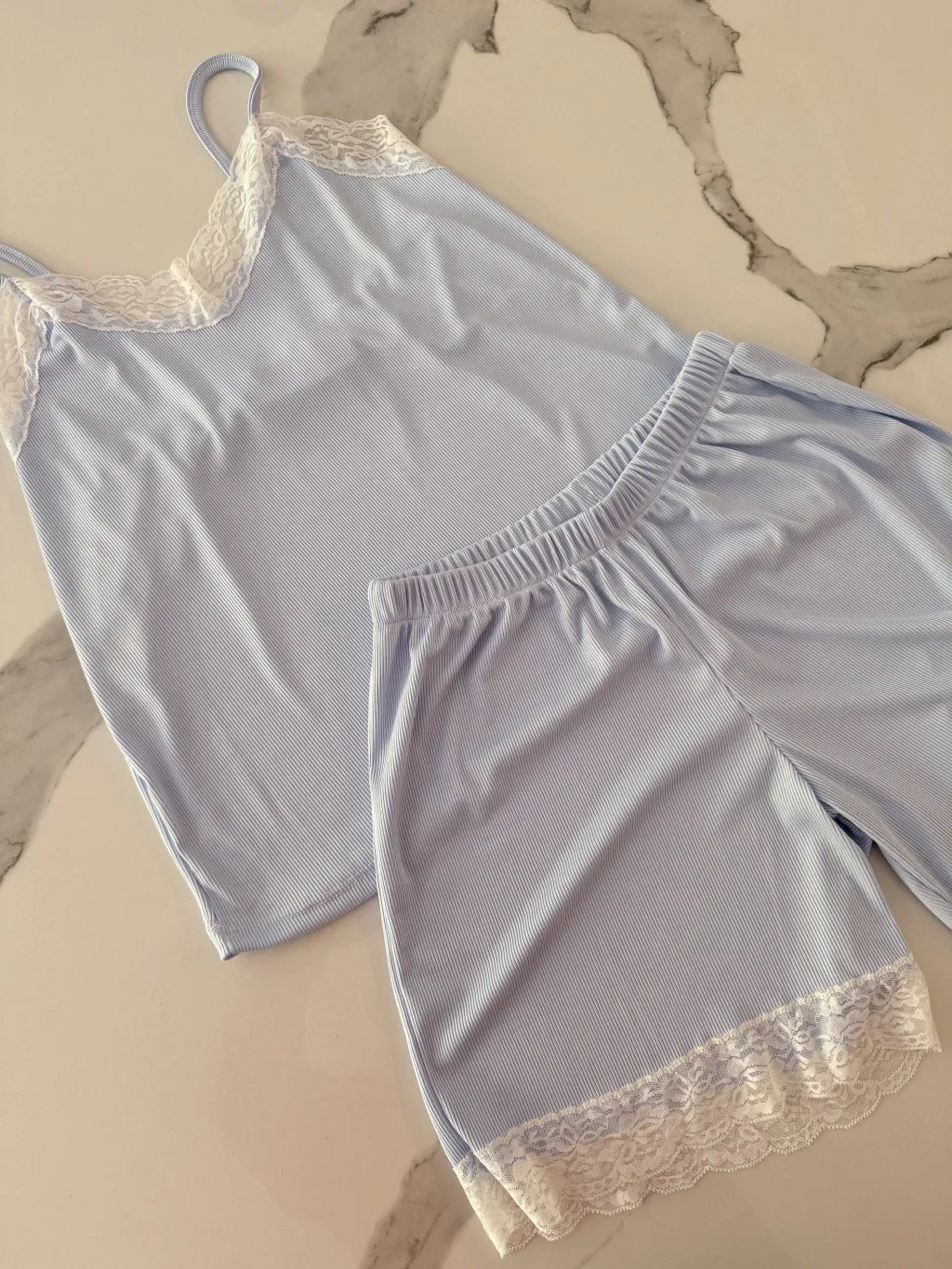 PIJAMA MORLEY CORTO PUNTILLA BLANCA (CELESTE)
