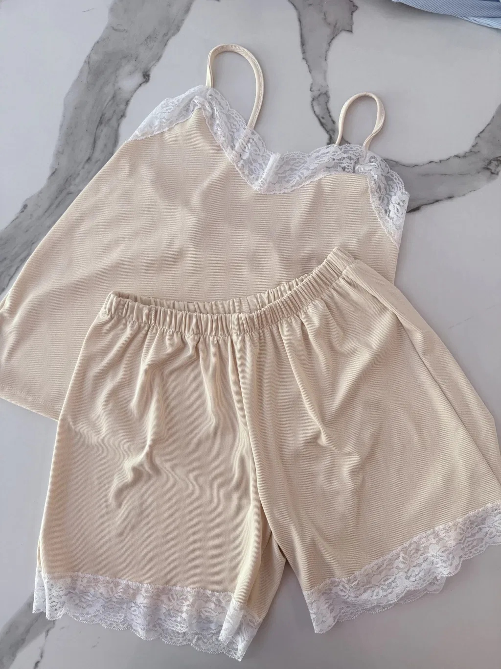 PIJAMA MORLEY CORTO PUNTILLA BLANCA (MANTECA)