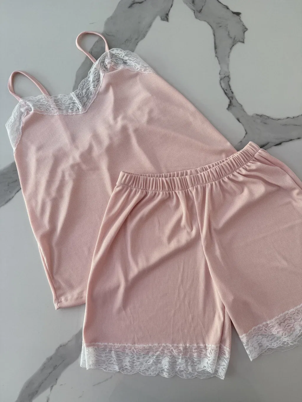 PIJAMA MORLEY CORTO CON PUNTILLA BLANCA – Comodidad y estilo en tres talles súper reales