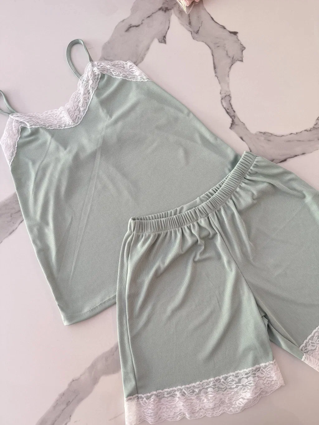 PIJAMA MORLEY CORTO CON PUNTILLA BLANCA – Comodidad y estilo en tres talles súper reales